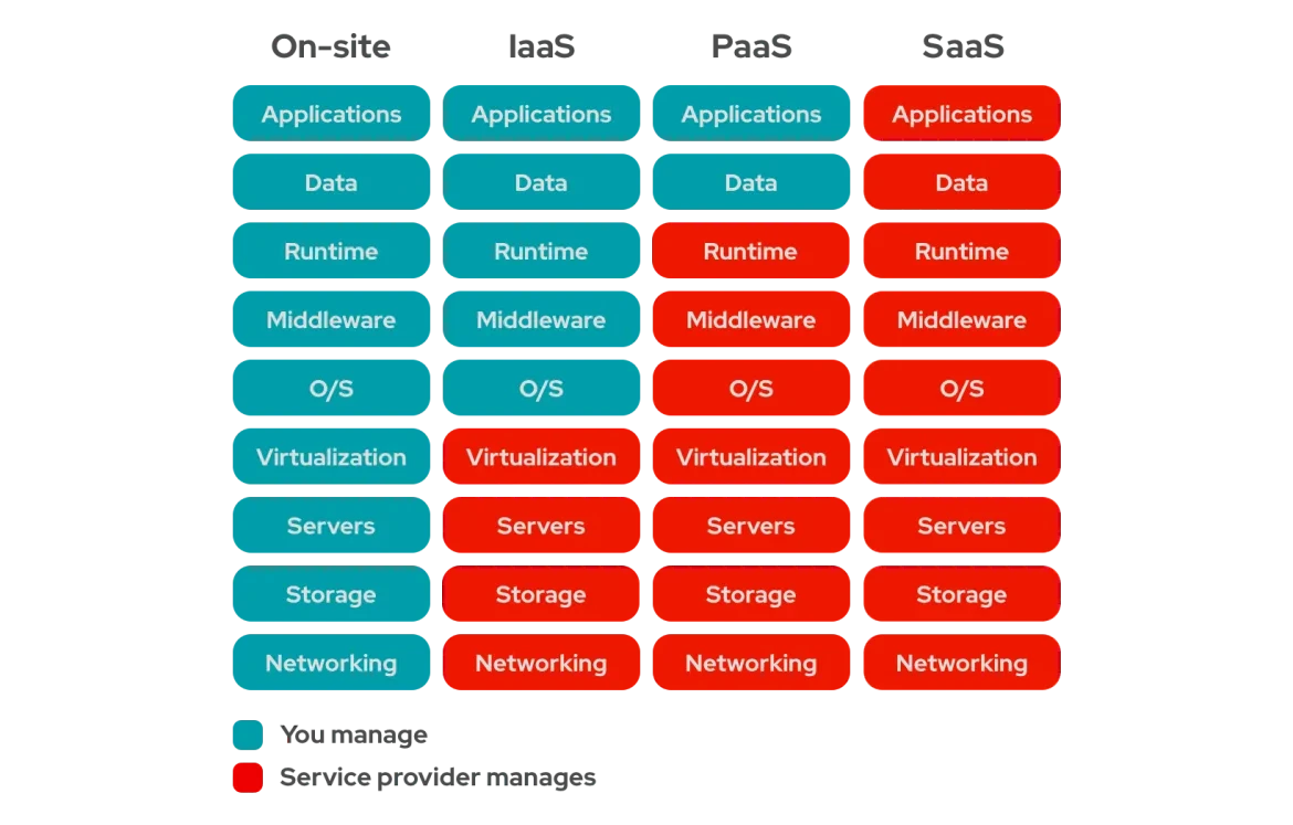 클라우드 컴퓨팅은 어떠한 서비스를 제공하는지에 따라 여러 모델이 존재한다. 대표적으로는 IaaS(Infrastructure as a Service), PaaS(Platfom as a Service), SaaS(Software as a Service)가 있다. 이 세 단어에 공통으로 붙어 있는 '-aaS'는 'As-a-service'의 약자로 클라우드 서비스를 가리킨다. 클라우드 서비스 사용자들의 니즈가 다양해짐에 따라 여러 종류의 모델이 생겨나고 있다.
