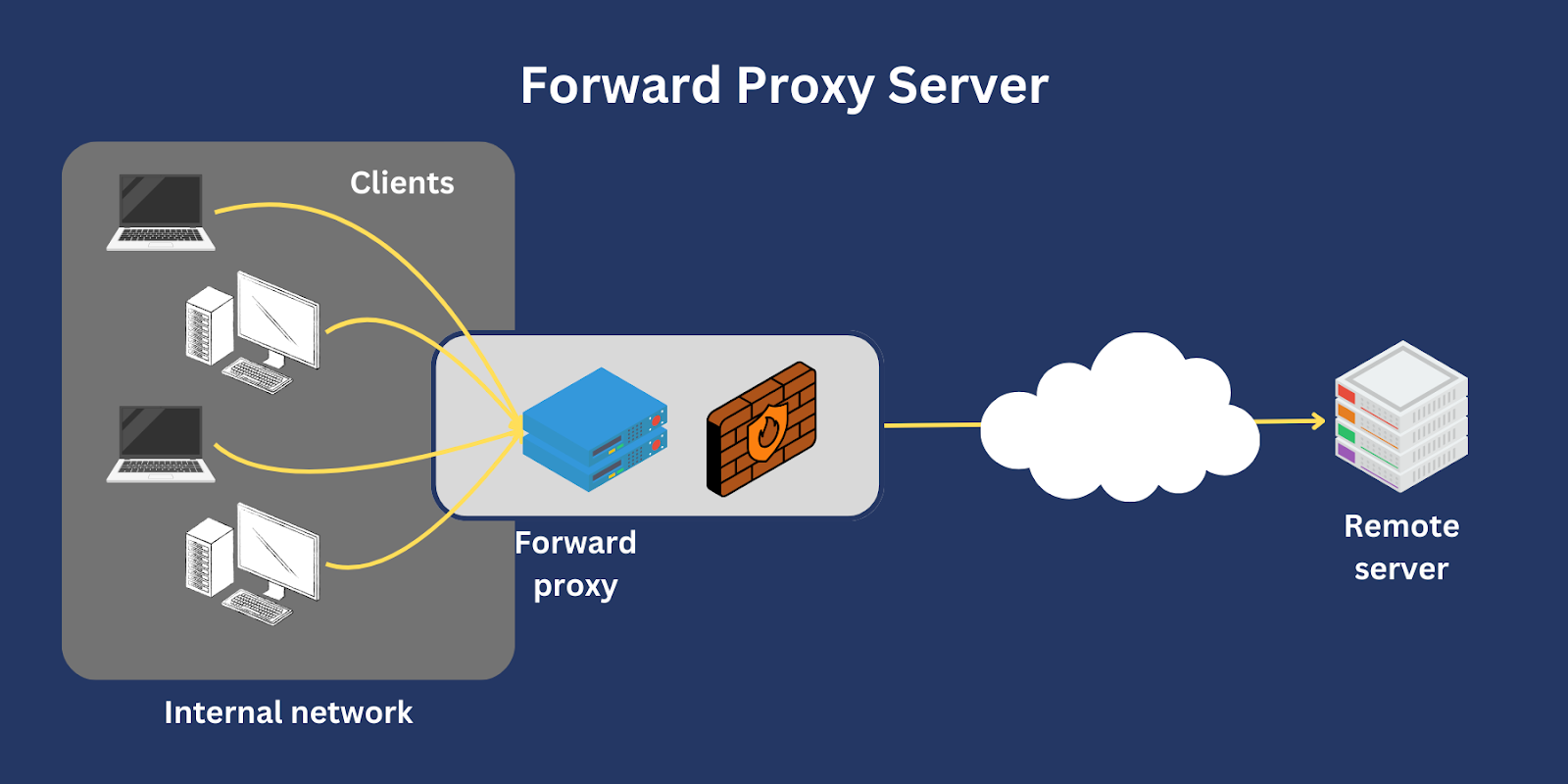 포워드 프록시를 통해서 얻는 이점 첫번째는 로컬 네트워크와 인터넷 사이를 오가는 트래픽을 제어할 수 있다. 예를 들어 미성년자들이 부적절한 콘텐츠를 브라우징하는 것을 막기 위해 포워드 프록시를 사용할 수 있다. 두번째 이점은 포워드 프록시는 대개 캐싱 기능이 있어 빈번하게 사용된 콘텐츠가 있다면 서버의 응답을 캐싱해서 저장해 불필요한 외부 전송을 없애 성능을 향상한다. 세번째로 보안을 강화할 수 있다. 클라이언트의 요청을 포워드 프록시가 요청한 것처럼 가장함으로써 서버로부터 클라이언트의 요청을 숨길 수 있고, 정해진 사이트만 연결하게 설정하는 등 웹 사용 환경 제한도 가능하다. 또한 포워드 프록시에서 네트워크 패킷 로깅도 가능학 때문에 보안이 중요한 기업 환경에서도 많이 사용한다.